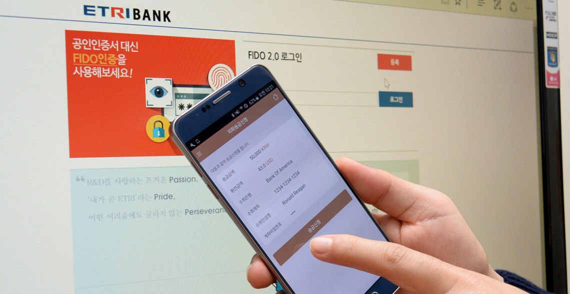 2015년 5월, ETRI가 개발한 간편인증 솔루션이 ‘온라인간편인증협회(FIDO)’의 인증시험을 세계 최초로 통과했다.