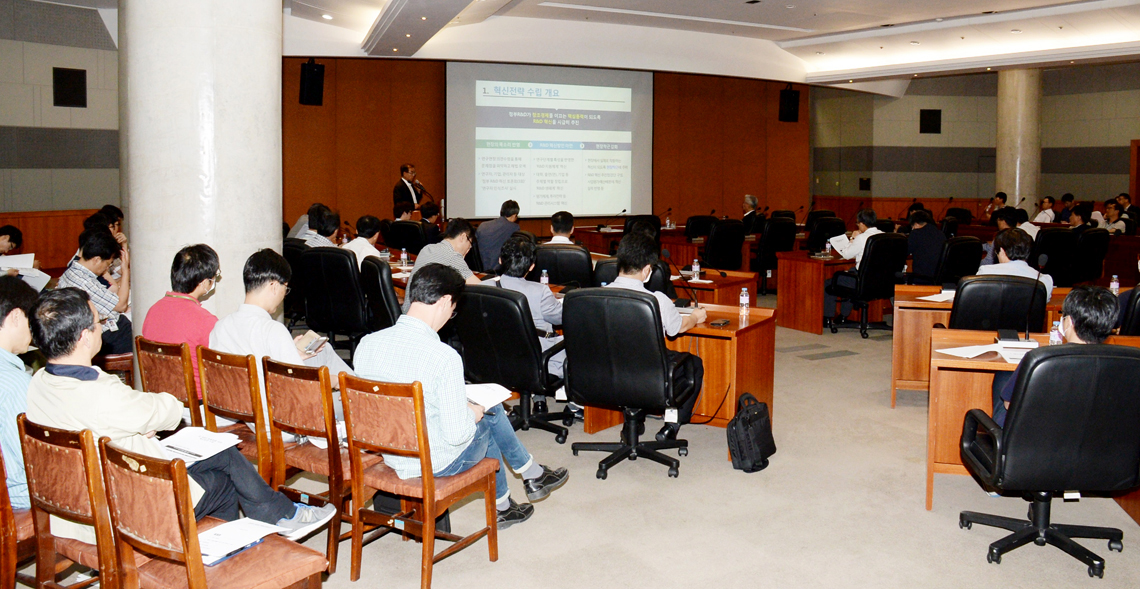 2015년 6월 5일 개최된 ‘미래부 R&D혁신방안 설명회. ETRI는 ‘16년도 신규사업 3개 과제 25.9억 예산 증액을 통해 기관 고유사업 R&D 수행역량을 확보했다.