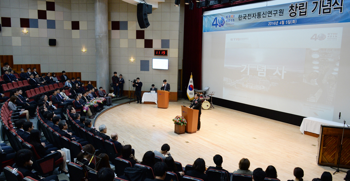 2016년 4월 5일, ETRI는 국가과학기술연구회 이상천 이사장, 양승택 전 정보통신부 장관, 최문기 전 미래창조과학부 장관, 정선종·임주환·김문현 전 소장 등과 임직원이 참석한 가운데 창립 40주년 기념식을 개최했다.