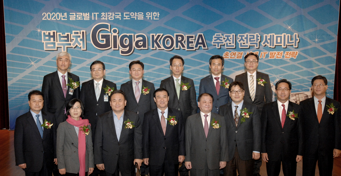 2012년 10월 29일에 개최된 기가코리아 추진전략 세미나. ETRI는 독창적 기술 경쟁력을 바탕으로 ‘Giga KOREA 사업’ 기획, ‘세계 1등 100배 빠른 광 인터넷’ 기술개발 등 과학기술 리더십을 확산시켰다.