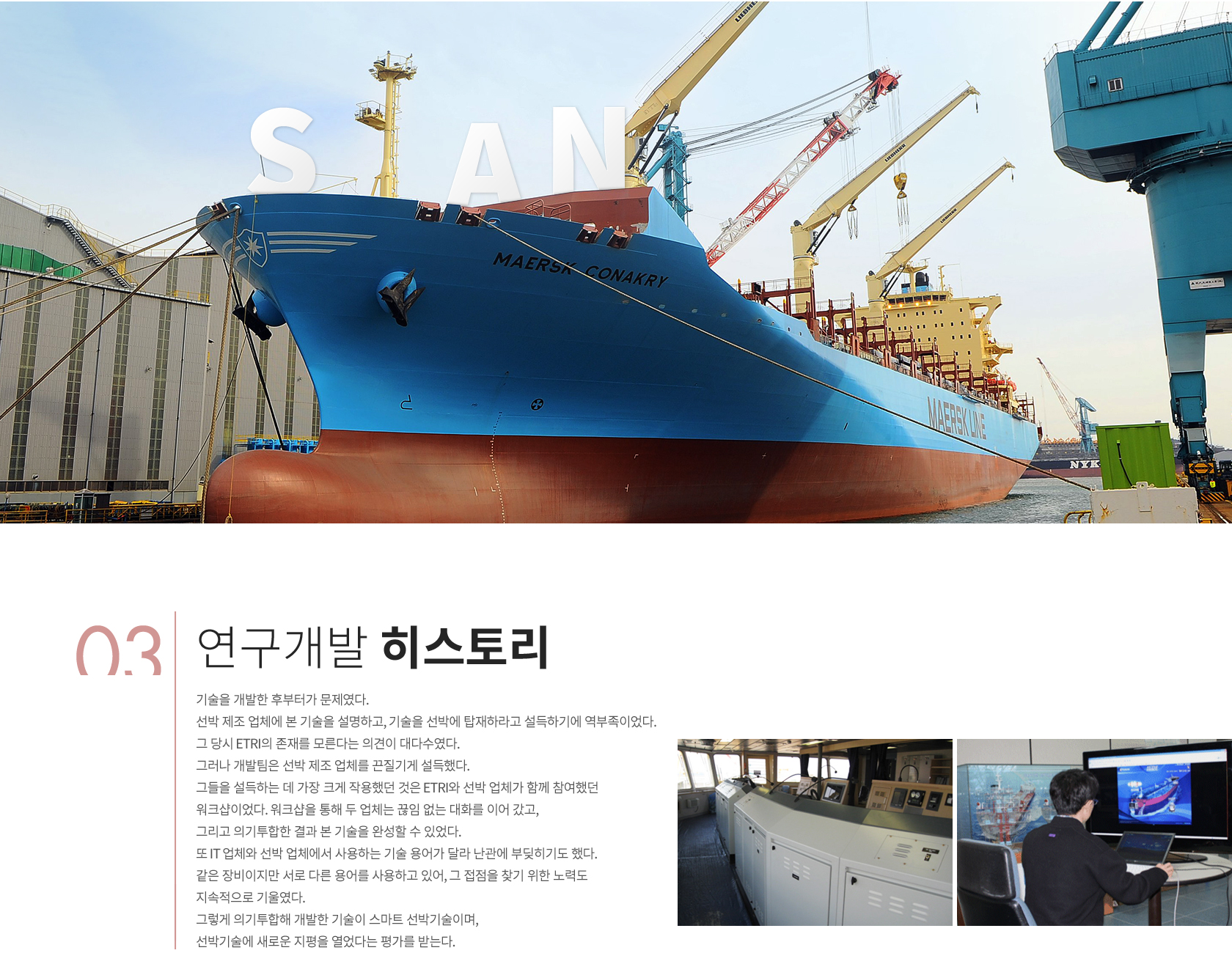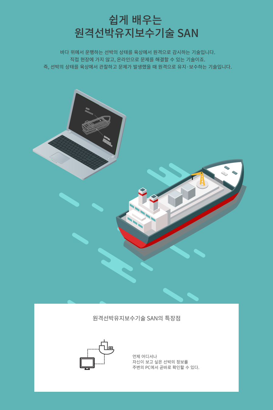 선박의 안전 및 방재에 있어 가장 기본적인 것은 설계부터 제작시공, 유지보수까지 보다 철저한 관리와 운항시스템의 최적화다. 특히 기존 해운산업의 관행에 대해 ICT의 관점에서도 문제점을 개선해나갈 필요성이 컸다. 지난 2011년 개발된 ‘SAN(선박네트워크)기반 원격 선박 유지보수 기술’이 주목 받은 이유다.