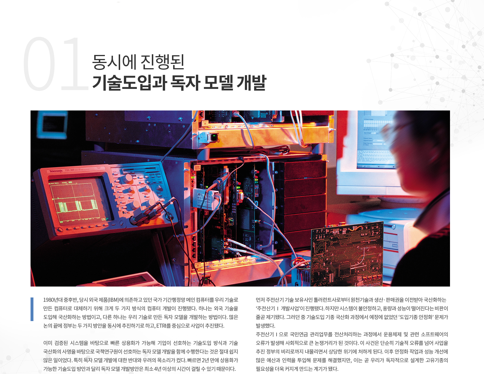 1980년대 중후반, 당시 외국 제품(IBM)에 의존하고 있던 국가 기간행정망 메인 컴퓨터를 우리 기술로 만든 컴퓨터로 대체하기 위해 크게 두 가지 방식의 컴퓨터 개발이 진행됐다. 하나는 외국 기술을 도입해 국산화하는 방법이고, 다른 하나는 우리 기술로 만든 독자 모델을 개발하는 방법이다. 많은 논의 끝에 정부는 두 가지 방안을 동시에 추진하기로 하고, ETRI를 중심으로 사업이 추진됐다.