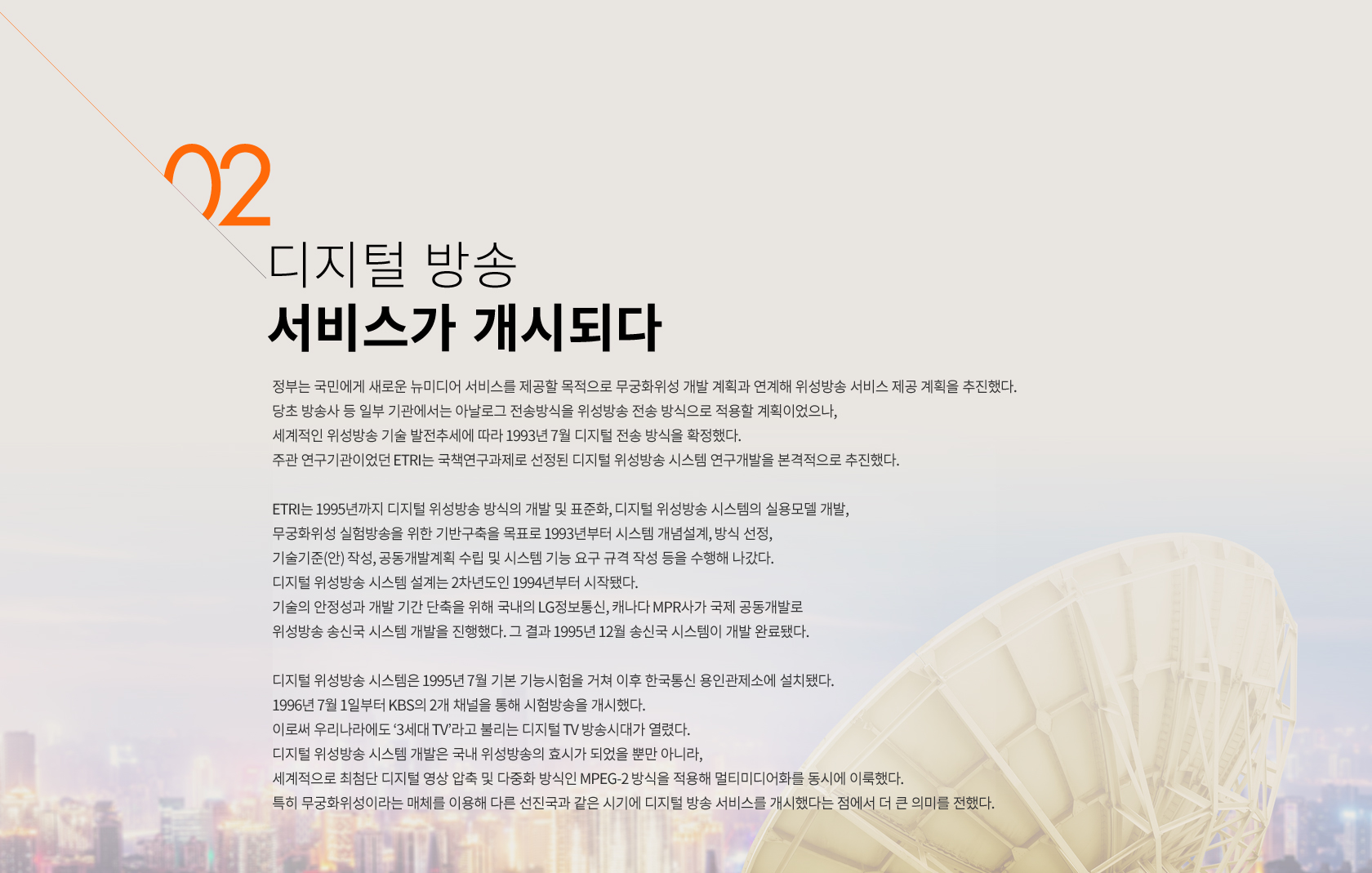 이와 함께 한국은 다매체·다채널 위성방송, 위성 중계서비스와 같은 ‘디지털 위성방송’ 시대의 포문을 열었다.