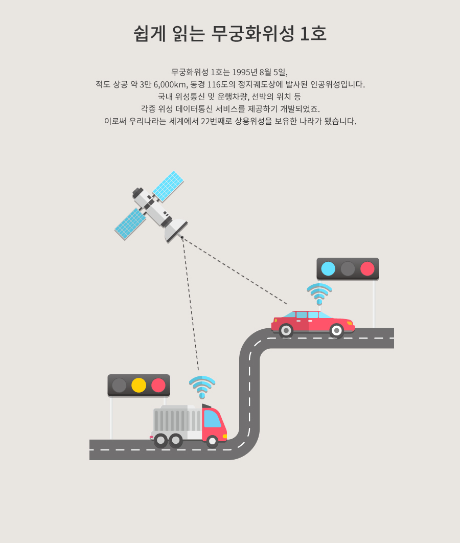 정부는 1995년까지 우리나라 최초의 위성 ‘무궁화 1호’를 발사하겠다는 목표를 세운다. 이에 따라 다양한 분야의 연구소, 기관 등이 참여를 시작한다. 위성 시스템 중 위성체와 관제 시스템 제작은 미국의 제너럴일렉트릭(GE)사가, 발사 서비스는 미국 맥도넬더글라스(MD)사가 도맡았다.