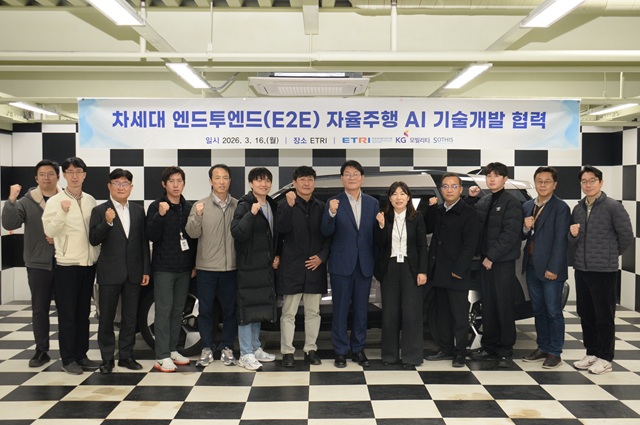 이번 협력에는 완성차 기업인 KG모빌리티가 실제 차량 주행 데이터와 시험 인프라를 제공하고, ETRI와 자율주행 전문기업인 ㈜소디스가 차세대 엔드투엔드 자율주행 소프트웨어 개발과 통합 시스템 구축을 담당한다.