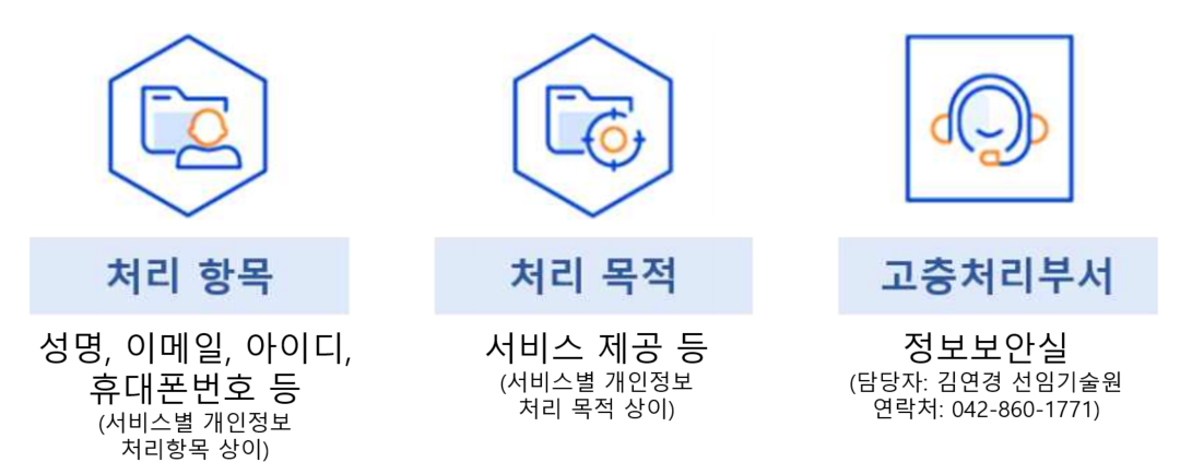 ① 연구원이 처리하고 있는 개인정보 항목은 다음의 항목으로 별도 게시합니다.